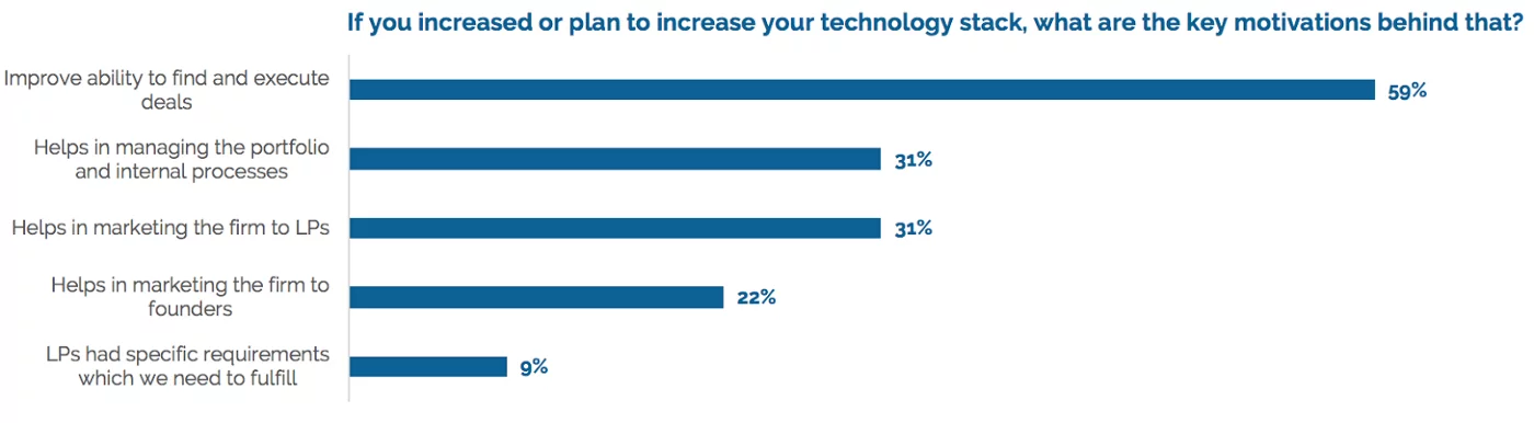 First, we asked VCs about their motivations for improving their VC’s tech stack (multiple replies were possible in all questions):